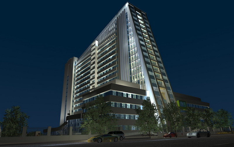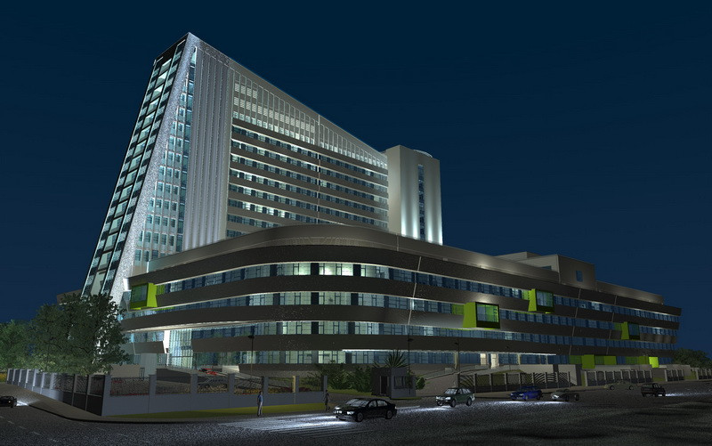 Allgemeines Krankenhaus mit 410 Betten, Intensivstationen (ICU, NICU, PICU), 12 OP-Räume, Spezialabteilung für Brandopfer, einem Notfall- und Diagnostikbereich, sowie Poliklinik für 800 Patienten, des Weiteren 3 OP-Räume für kleinere Operationen, sog. Ein-Tag-Chirurgie, sowie für diese erforderlichen Bedienungseinheiten.