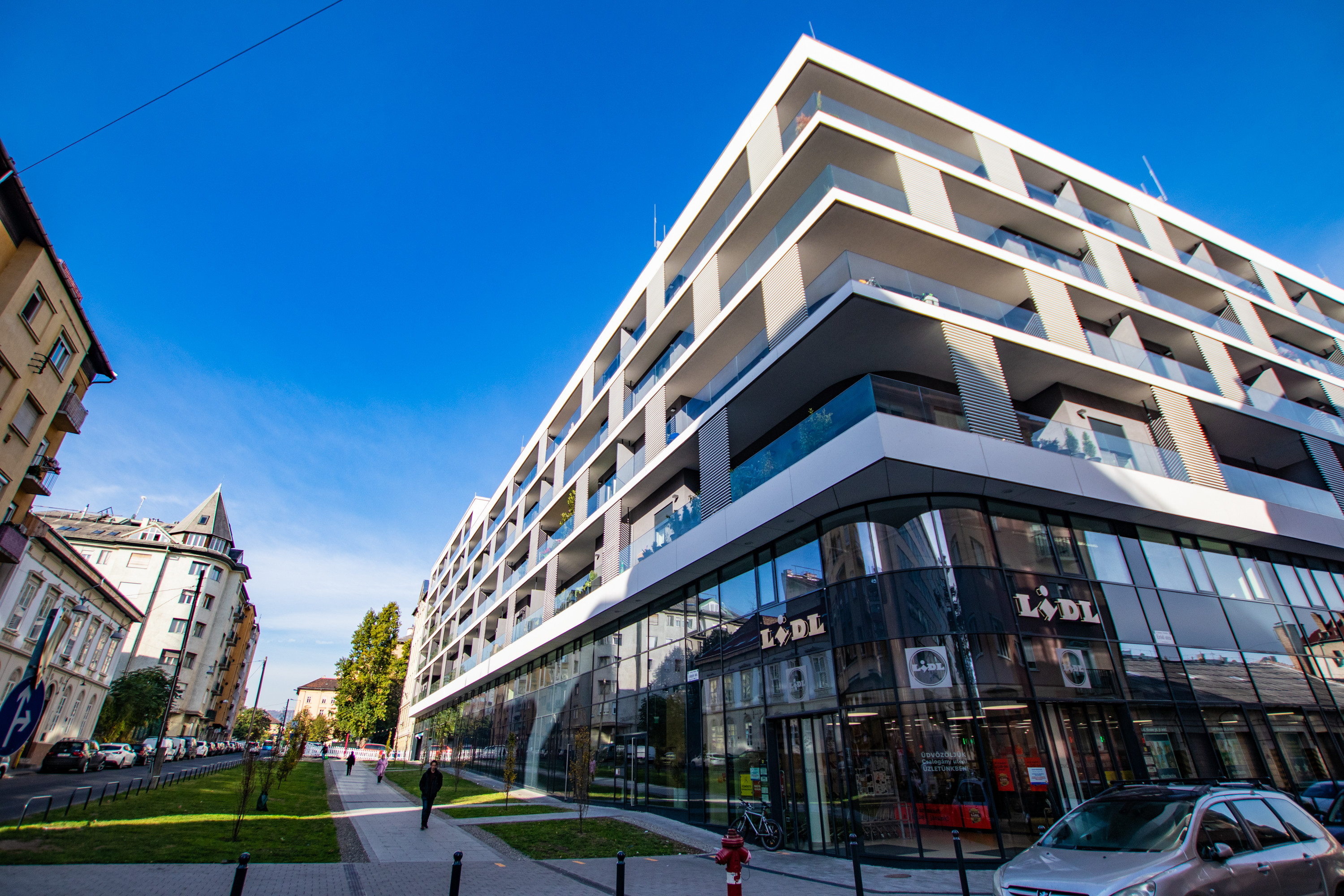99 Wohnungen wurden gebaut. Die einzigartige Fassade des multifunktionalen Gebäudes ist ein prägendes Merkmal der Umgebung. Zum Komfort der Bewohner wurde im Erdgeschoss des Gebäudes ein großer LIDL-Markt eingerichtet, darüber befinden sich Büros auf der gesamten ersten Etage und einem Teil der zweiten Etage, die unabhängig von den Wohnungen zugänglich sind. Das "U"-förmige Gebäude verfügt über Wohnungen von 44 bis 142 m² mit großen Balkonen und vielfältigen Grundrissen sowie Penthouse-Wohnungen mit großen Dachterrassen im obersten Stockwerk.