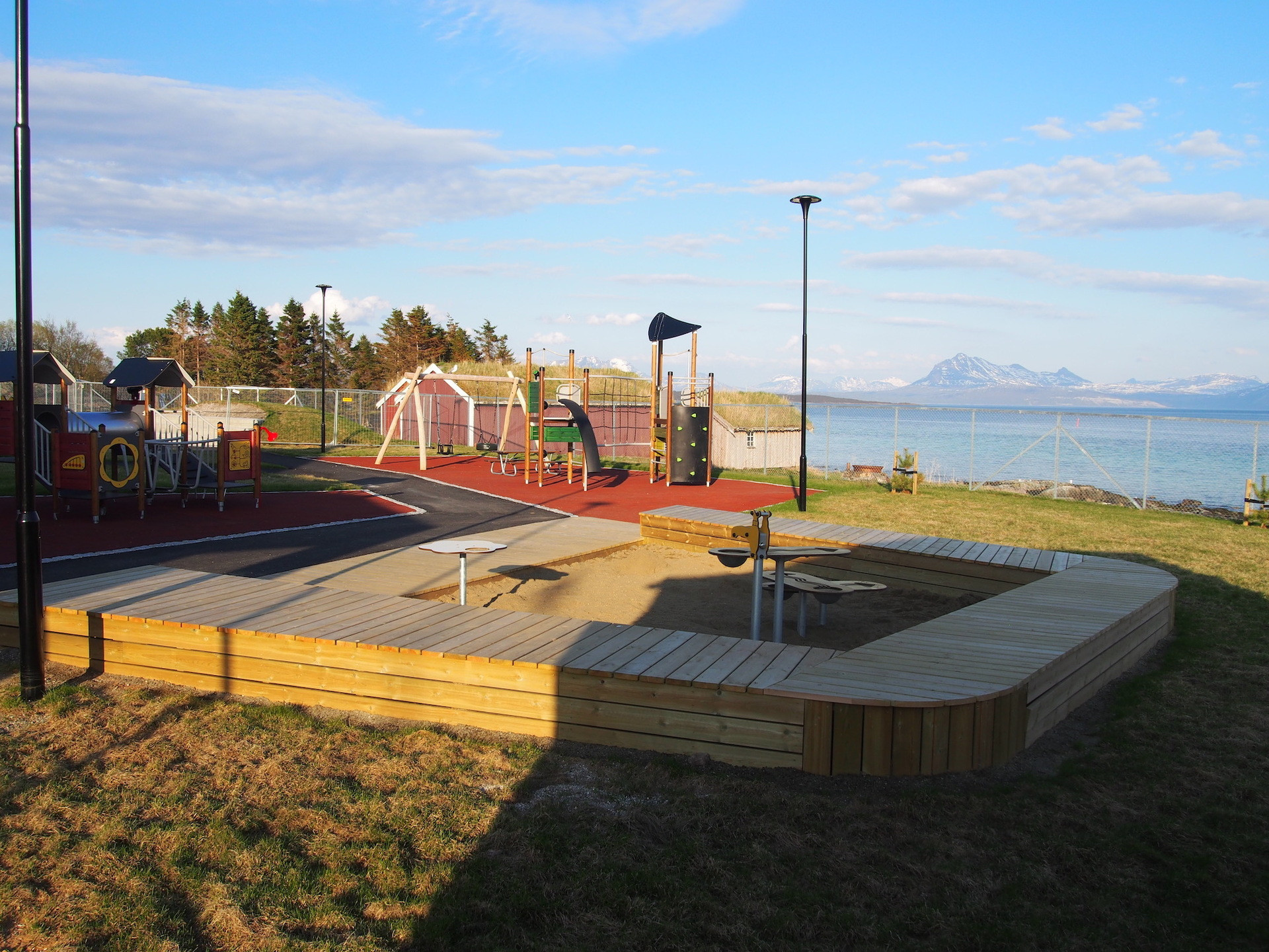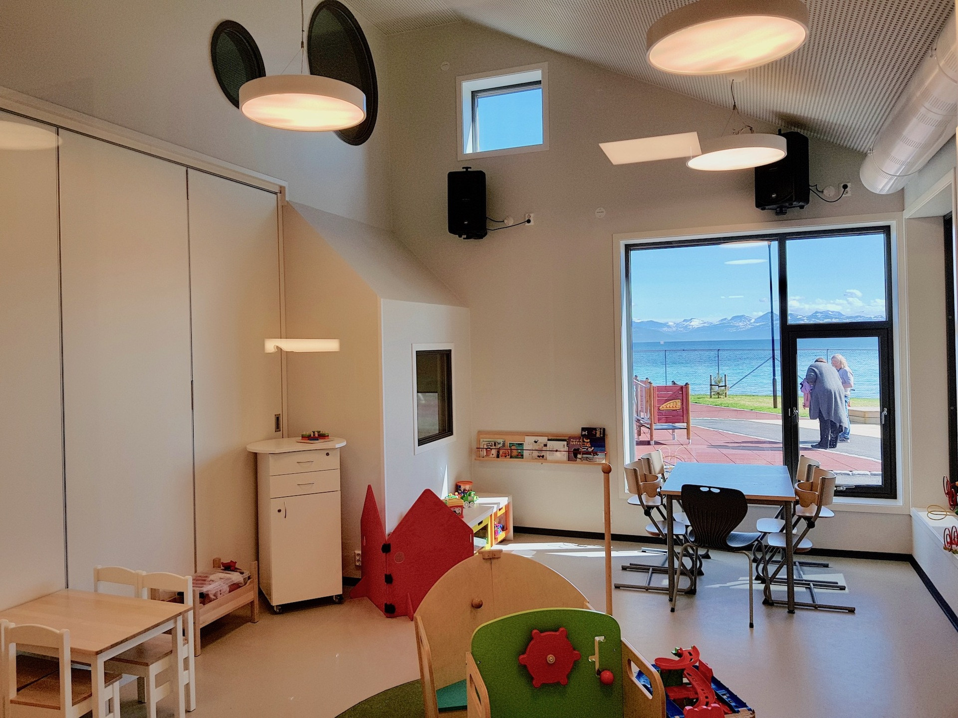 Grytøy-Bildungszentrum ( Lundenes, Norwegen). Der Auftrag für unsere Fima bezog sich auf die Erstellung des Planes für die Genehmigung eines neuen Kindergartens und die Erstellung der Ausschreibungsdokumentation des Generalunternehmers für die Fachbereiche.