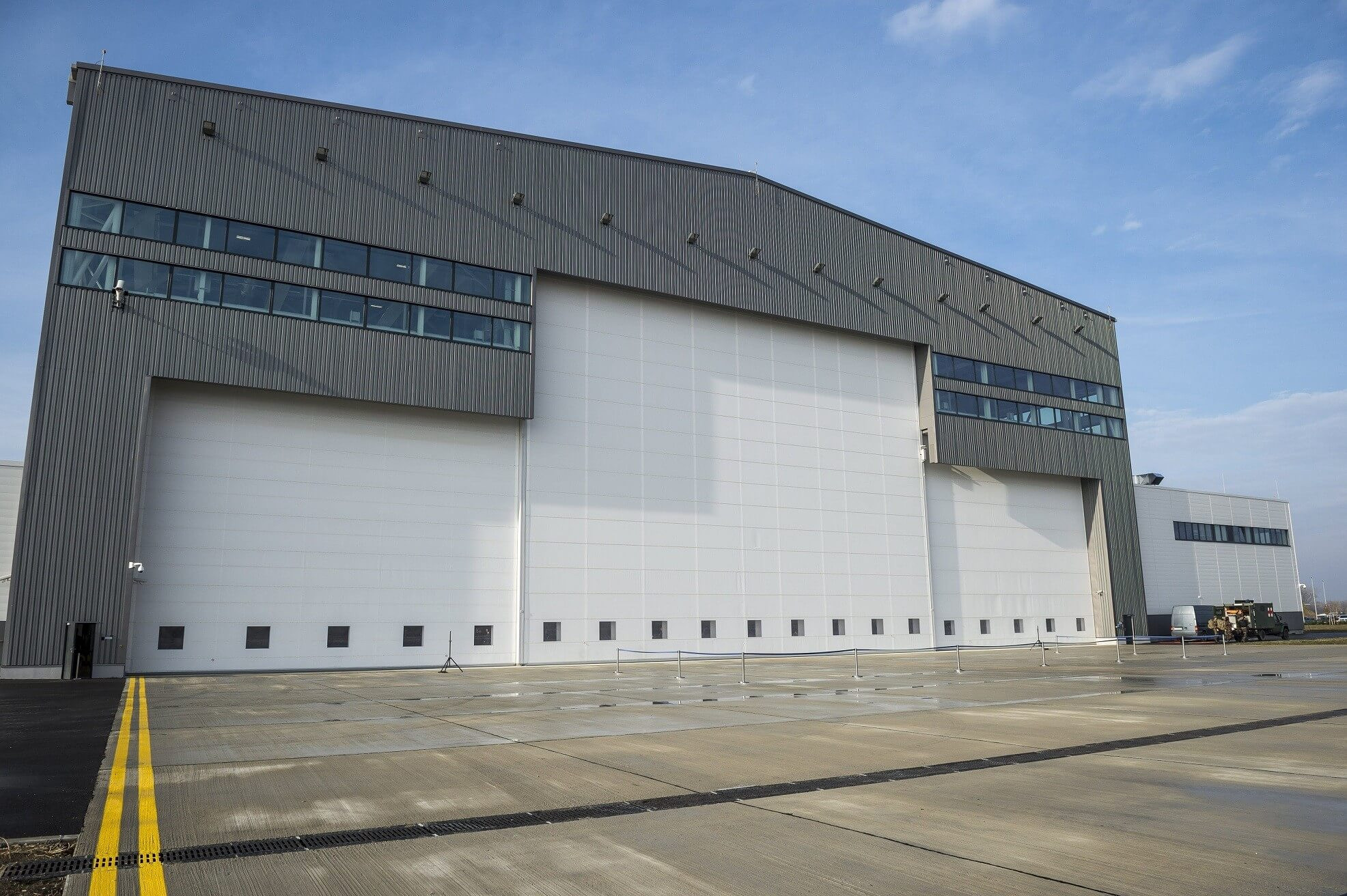 Luftstützpunkt der NATO in Pápa, technische Kontrolle des Entwicklungsprojekts für den Hangar C17