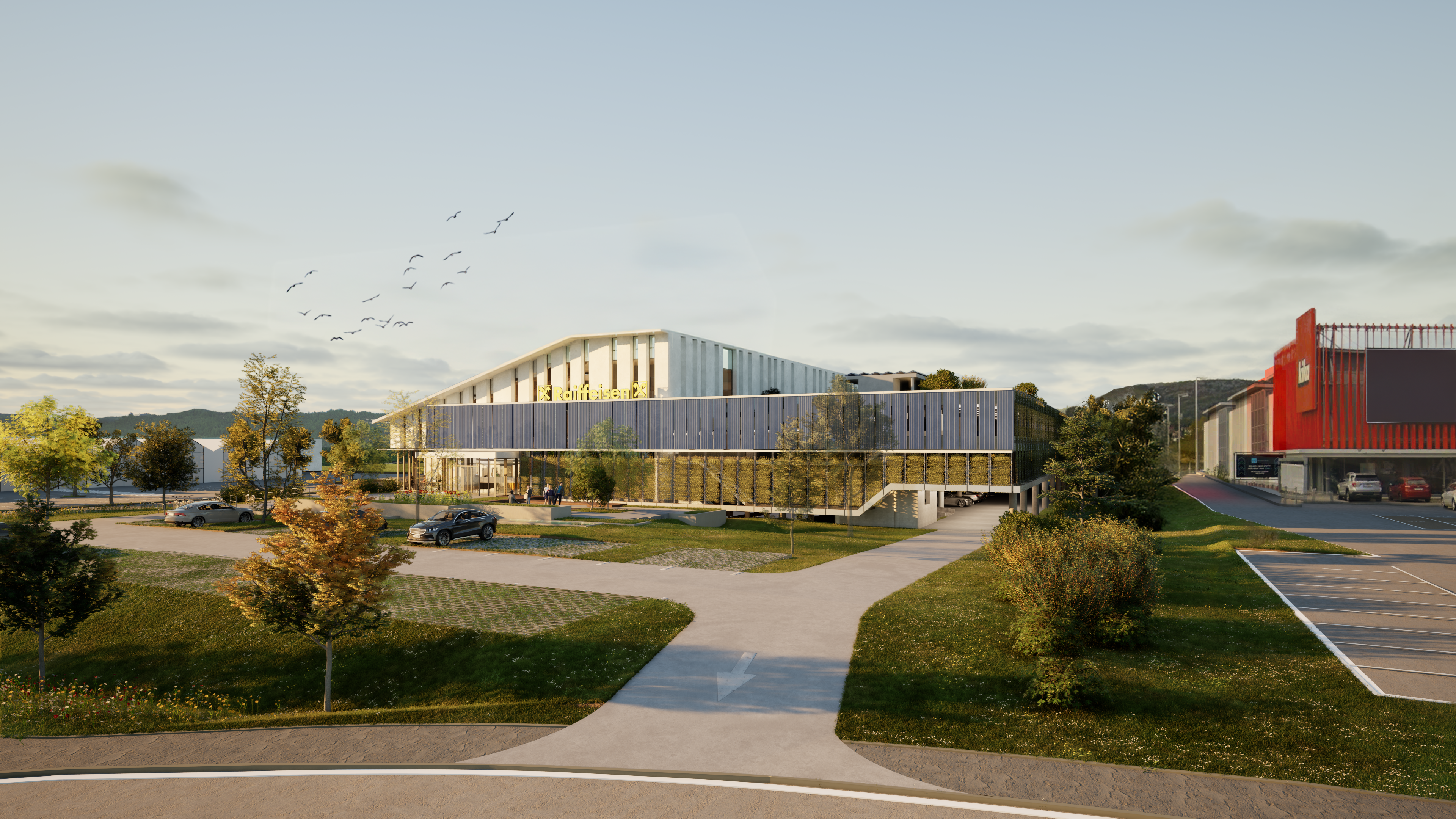 Unser Konzept wurde für einen eingeladenen Architekturwettbewerb für den neuen Landessitz der Raiffeisen Bank Burgenland in Eisenstadt entwickelt.