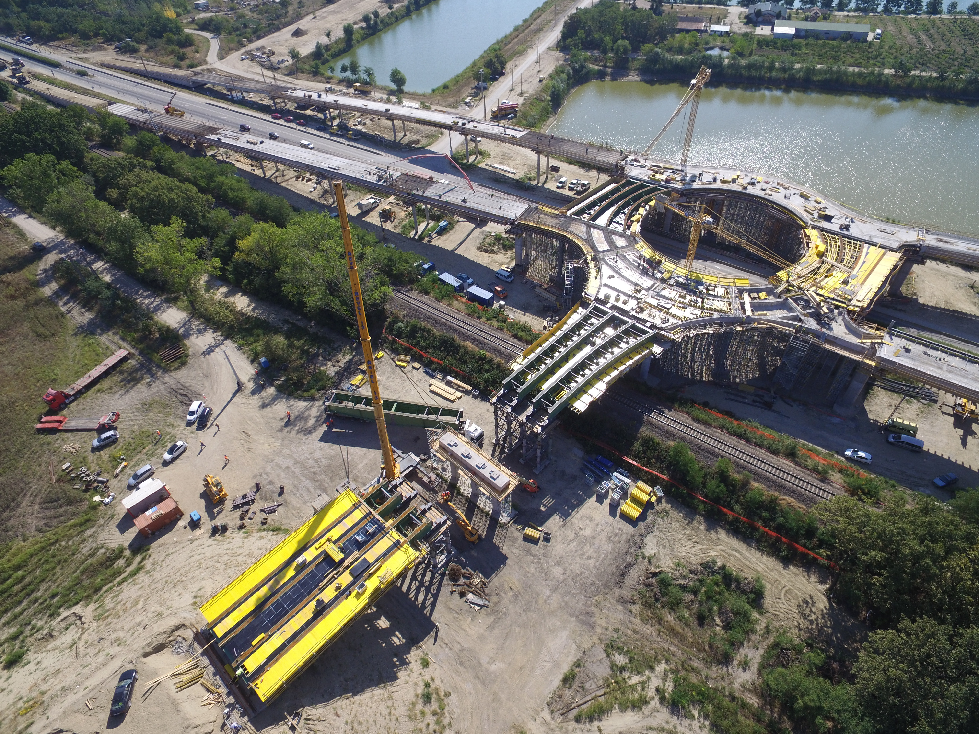 Circular bridge as bypass end node at Hódmezővásárhely, Hungary, along Highway no. 47