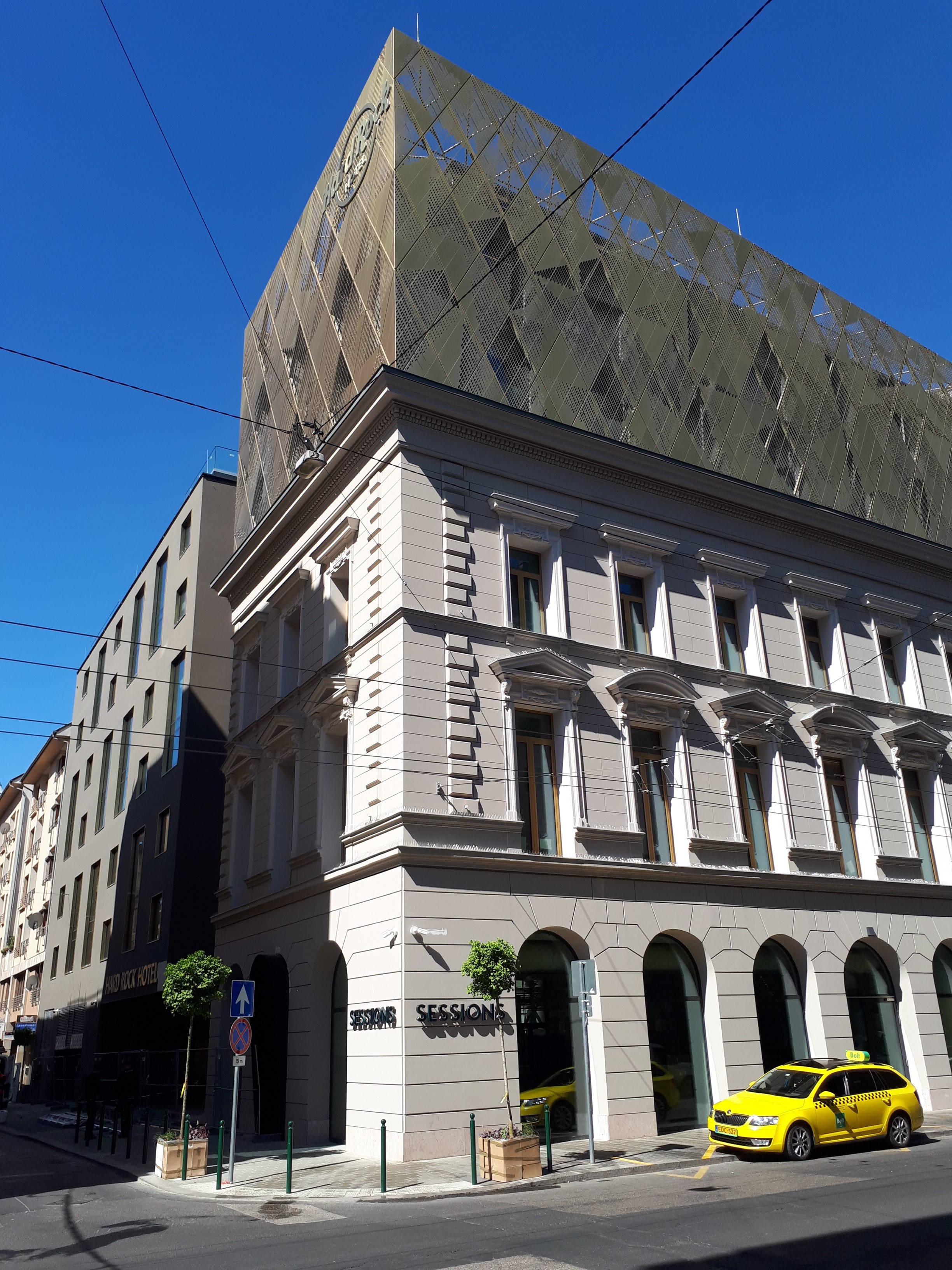 The special feature of the building is that the original design of the Nagymező street facade has been maintained, thus preserving the atmosphere of the original street view. The superstructure, representing a modern design and materials, has been placed on the lower levels with protected facade, which gives the building a truly characteristic appearance.