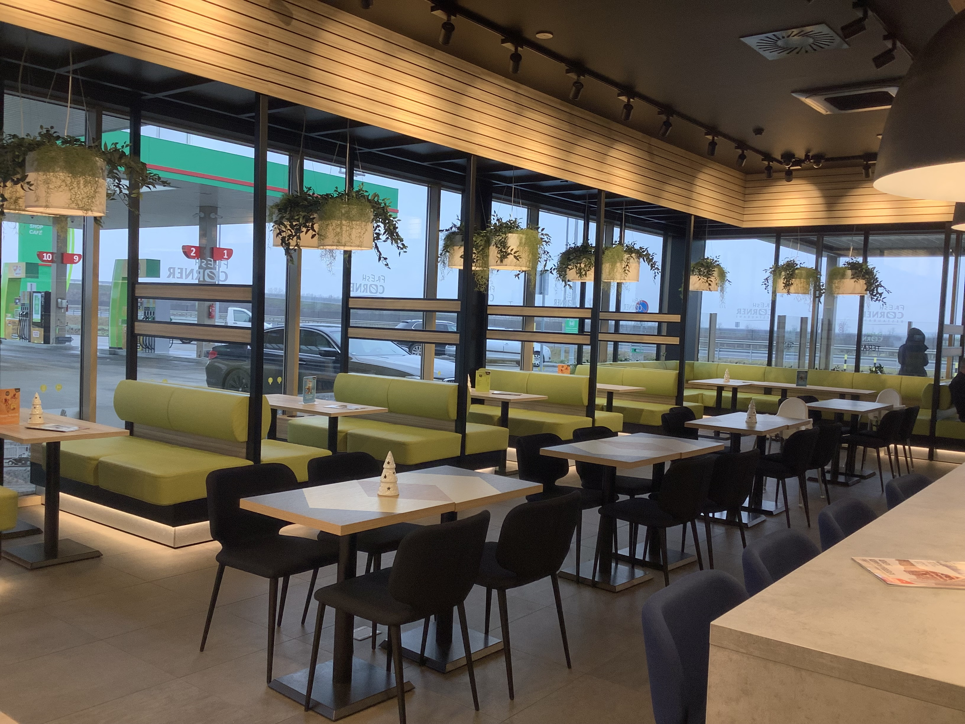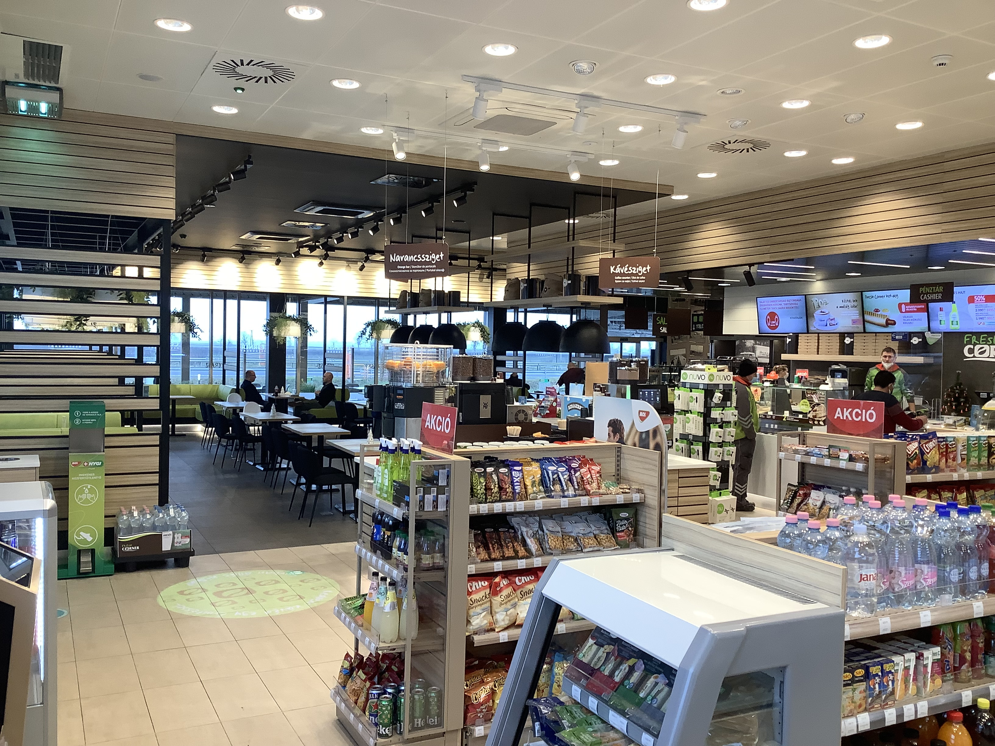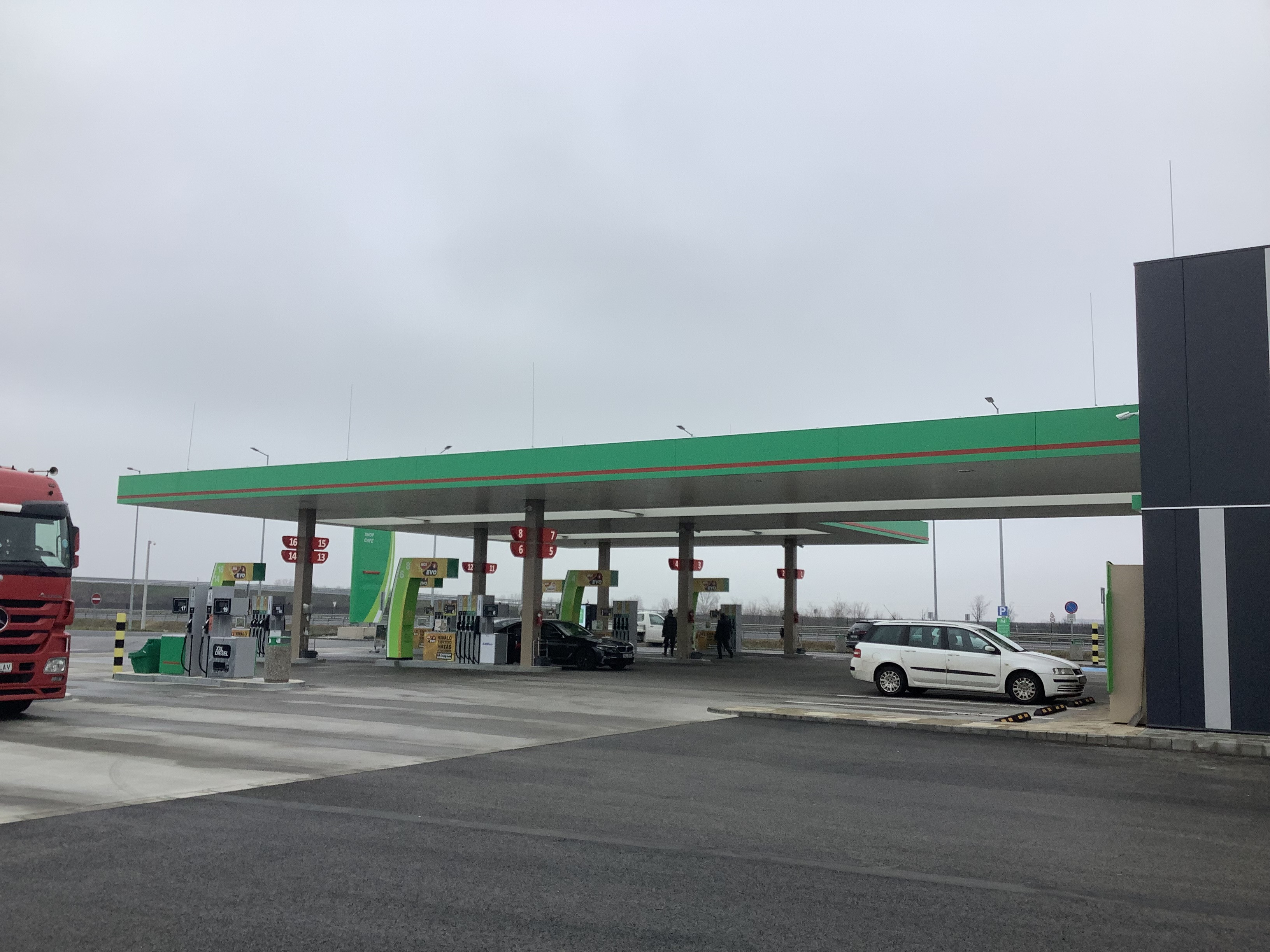 MOL fuel station and catering facility established at the Szent Gellért rest area on the right side of the M43 motorway at km 49 (Magyarcsanád) (10 fuel pumps; shop, café, and restaurant; 2 bus parking spaces, 60 parking spaces).