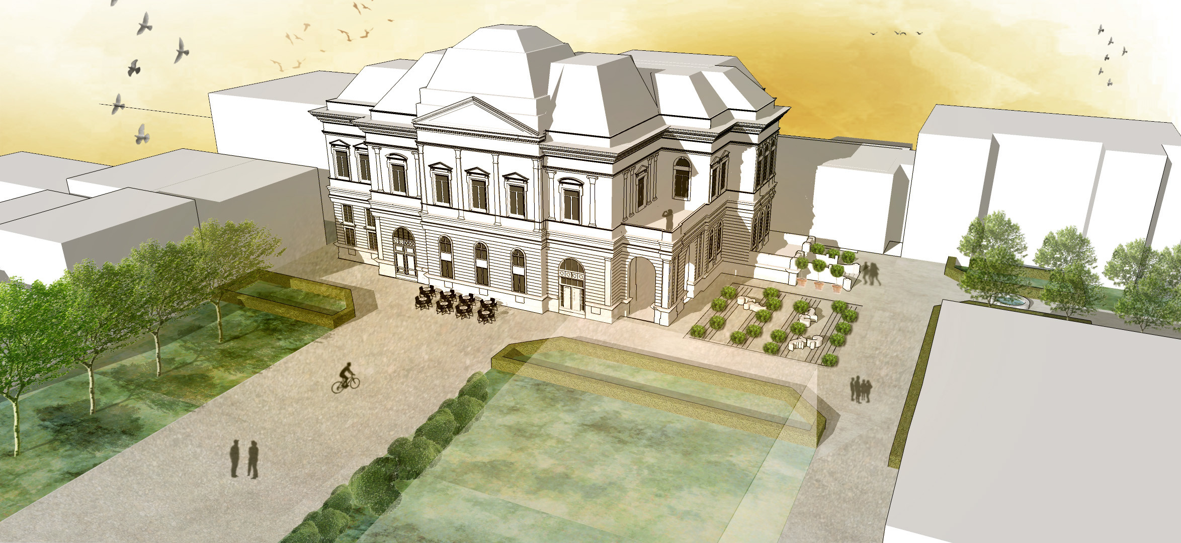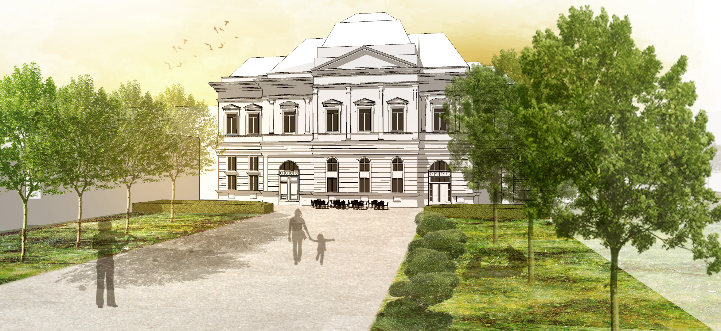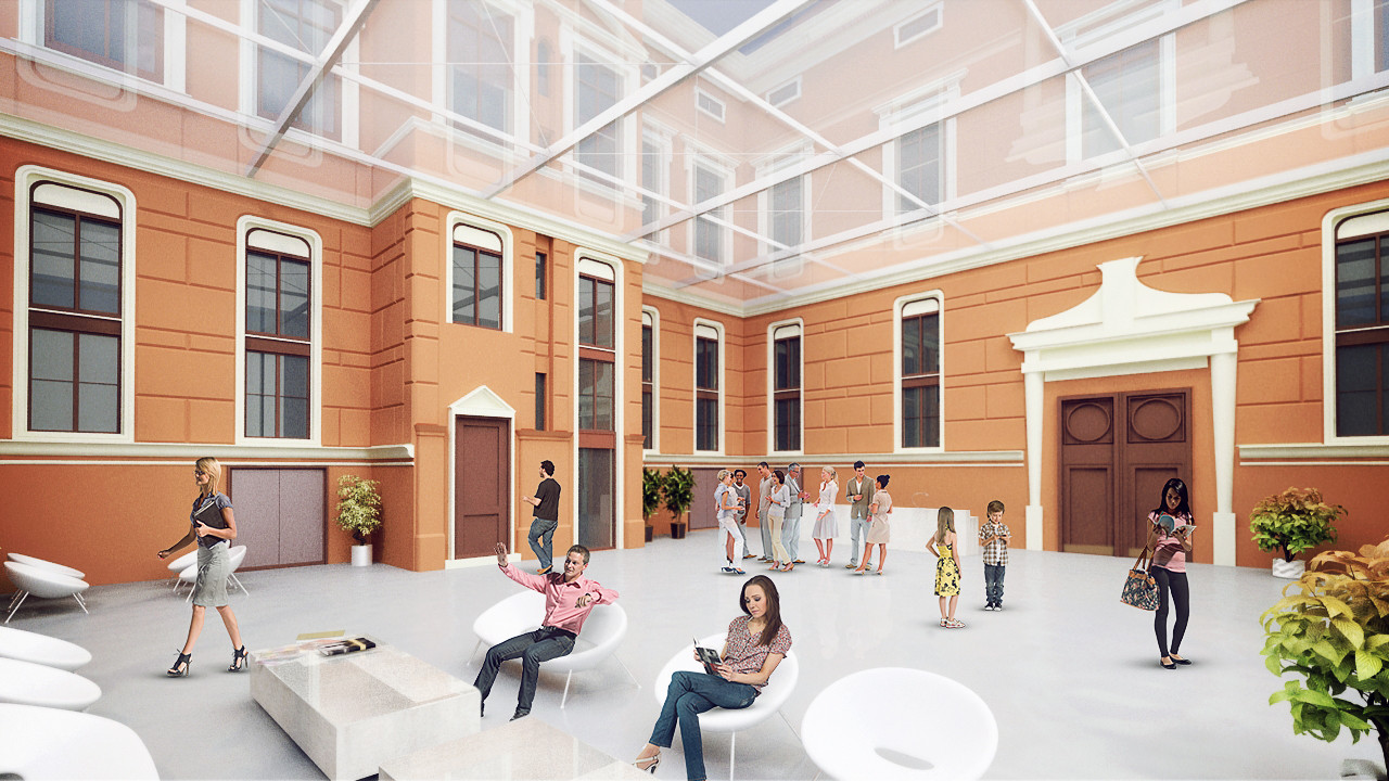 Conceptual architectural design for a cultural venue and exhibition space with the renovation of historical monument Russ-villa in the town of Sopron.