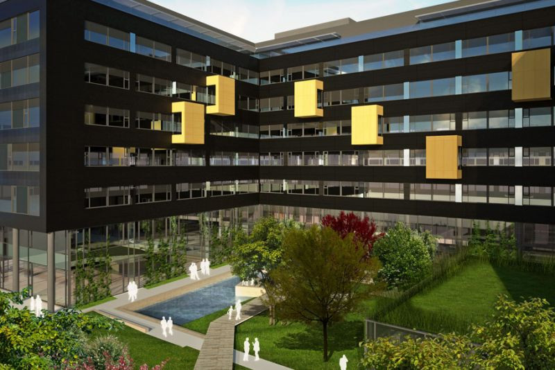 Az épület három szinten összesen 280 parkolóhellyel rendelkezik, és 17.800 m² bérelhető irodaterületet kínál a földszinten és hét emeletén. A munkakörnyezet minőségét tetőteraszok és hangulatos belső kert teszik még vonzóbbá.