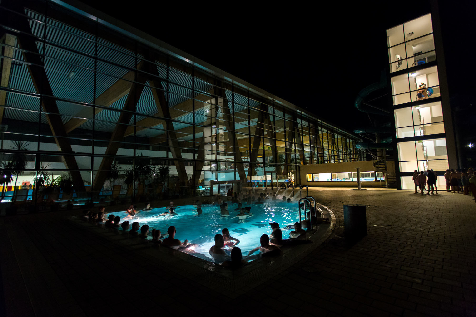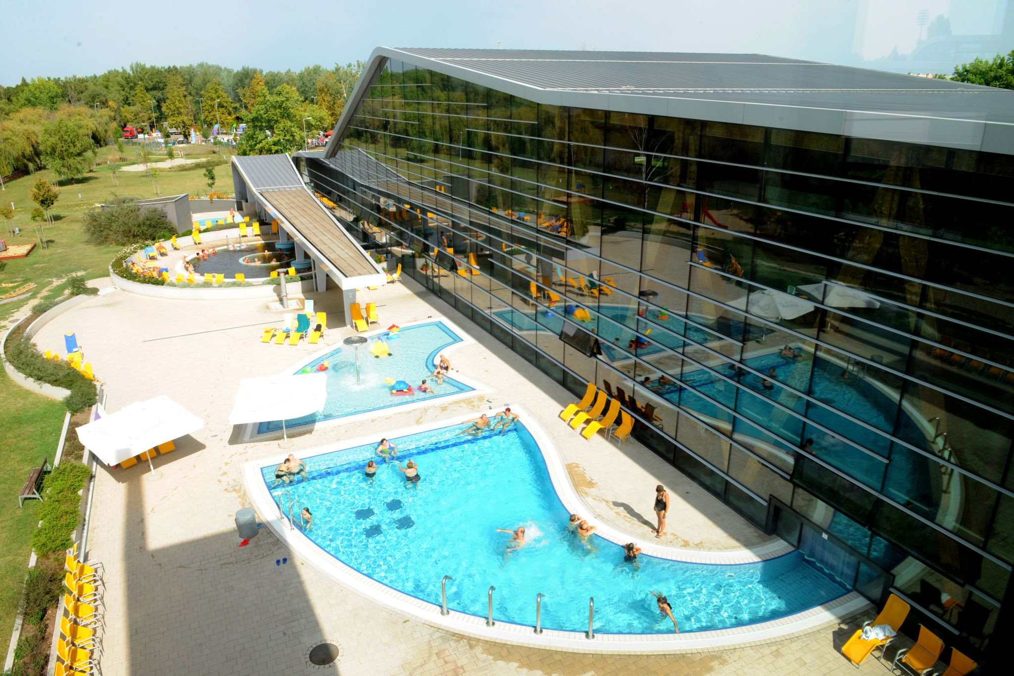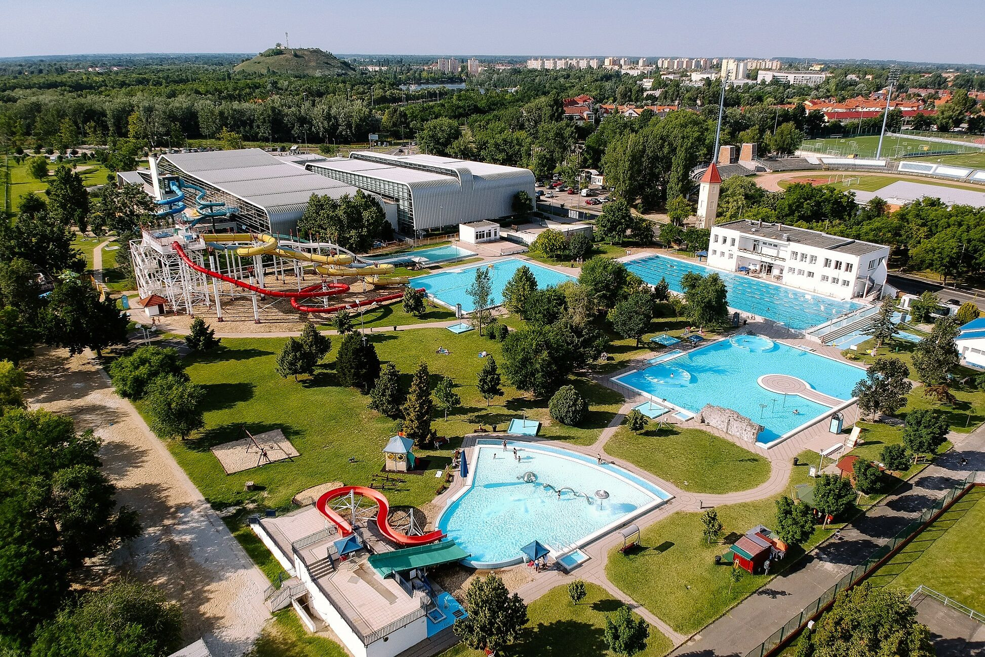 Kecskeméten a meglévő strand mellé épült egy új versenyuszoda és élményfürdő. A tervezés és a kivitelezés – amely intenzív tervezői művezetést igényelt – 2009 és 2012 között zajlott. Az épületre a vonzó megjelenés, valamint a modern kialakítás és felszereltség jellemző. A versenyuszoda és élményfürdő 3 szintes, a pincében raktárak, kiszolgáló helyiségek, személyzeti öltözők és vízforgató gépházak vannak. A földszinten versenyuszoda 700 fős lelátóval, bemelegítő medence, élményfürdő, szauna világ, wellness részleg, vendég öltöző, előcsarnok, étterem és 200 adagos konyha található. Az emeleten fitnesz, sportolói öltözők, élményfürdő pihenőtér, kazánházak, légtechnikai gépházak, a versenyek lebonyolításával kapcsolatos helyiségek (doppingvizsgálat, sportorvos, irodák, VIP helyiség stb.) kaptak helyet, a tetőn szellőző gépeket helyeztünk el.