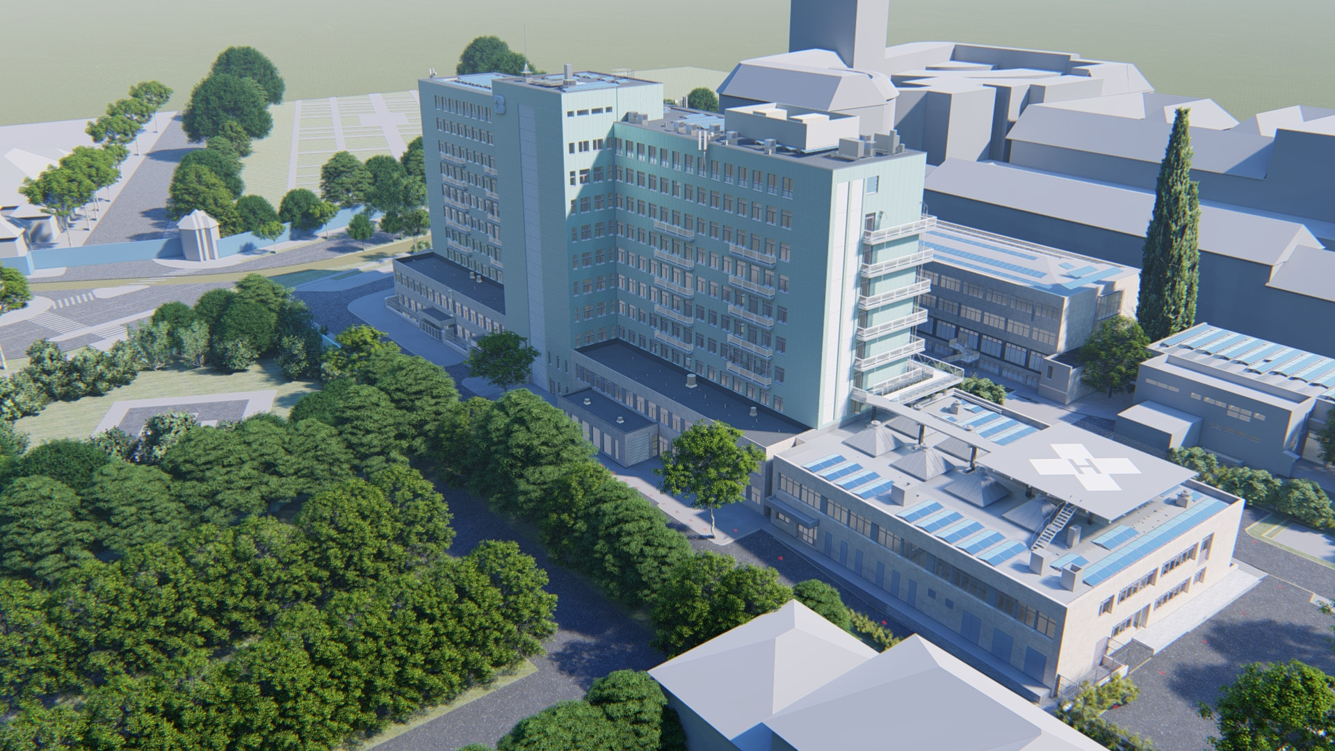 A tervezés eredményeként a megújított, az új helikopterek által is használható helikopter-leszálló és a sürgősségi műtők közötti kapcsolat jelentősen javulhat az új felvonó és az összekötő folyosó betervezésével.