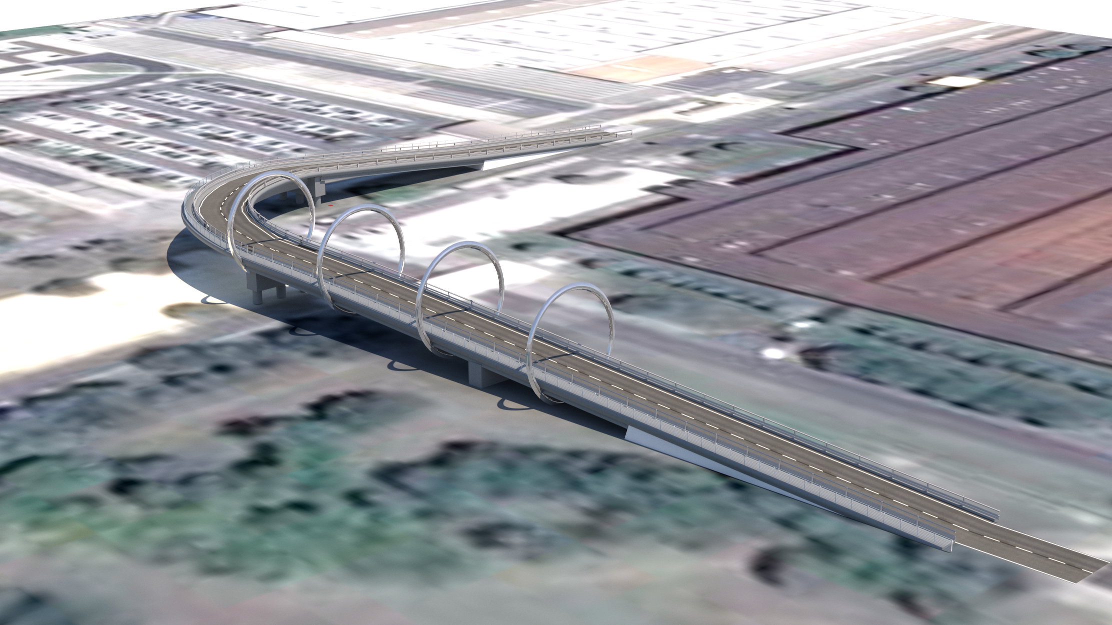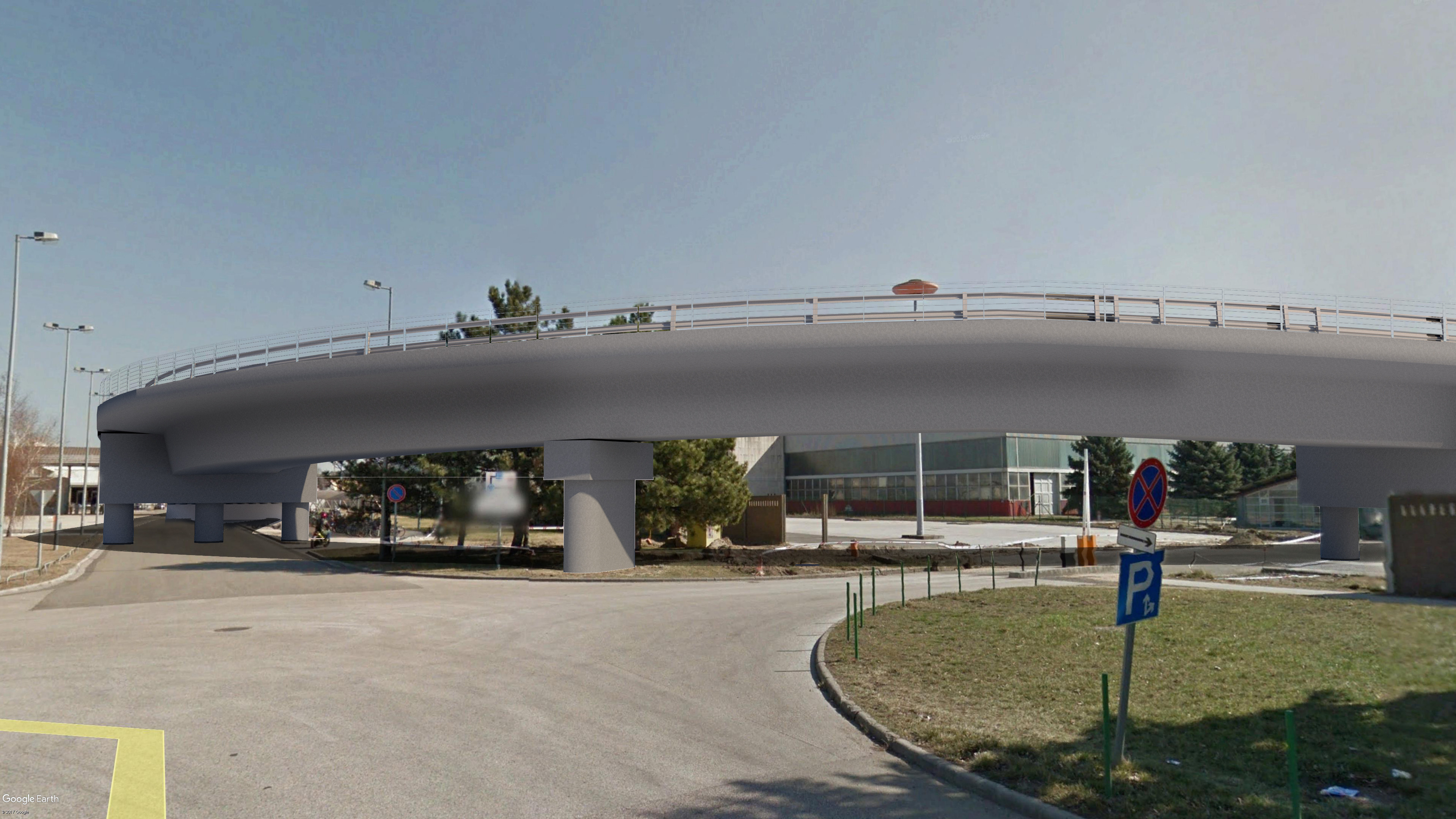 Az út vonalvezetési kötöttségei miatt a fel/lehajtó hidakhoz előregyártott gerendás szerkezetet, míg az R=45m sugarú részen acél öszvér felszerkezetet terveztünk. A hidas tervekkel párhuzamosan látványterv is készült.