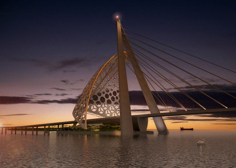 Baku ( Azerbajdzsán ) a Kaszpi tenger öble mentén fekszik. A megvalósíthatóság vizsgálata folyik az öblöt 10,5 km hosszban átívelő 2x2 sávos városi autóút / autópálya kiépíthetőségére vonatkozóan. CÉH zRt. összesen 15 híd változatra készített építészeti és szerkezeti koncepciót.