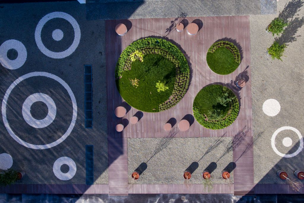 A tömegformálásnál a fejlesztő Infogroup odafigyelt arra is, hogy úgy helyezzen el egy majdani egybefüggő felszín feletti épülettömeget, hogy az tagoltságánál fogva ne nyomja el a környezetet.
