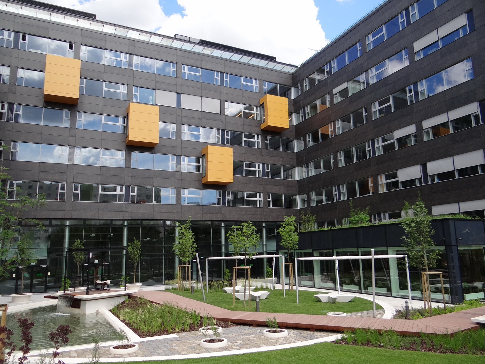 Az épület három szinten összesen 280 parkolóhellyel rendelkezik, és 17.800 m² bérelhető irodaterületet kínál a földszinten és hét emeletén. A munkakörnyezet minőségét tetőteraszok és hangulatos belső kert teszik még vonzóbbá.