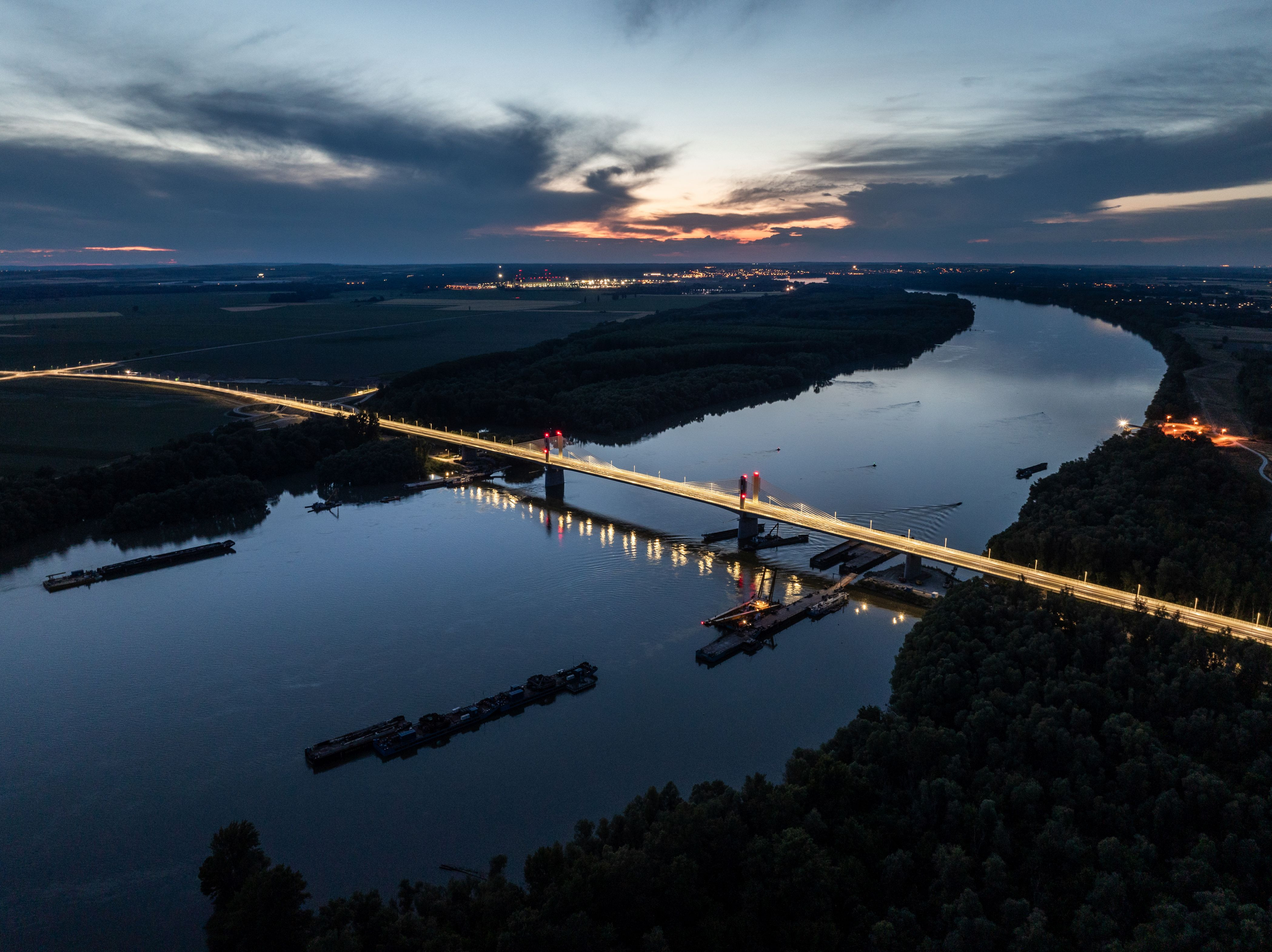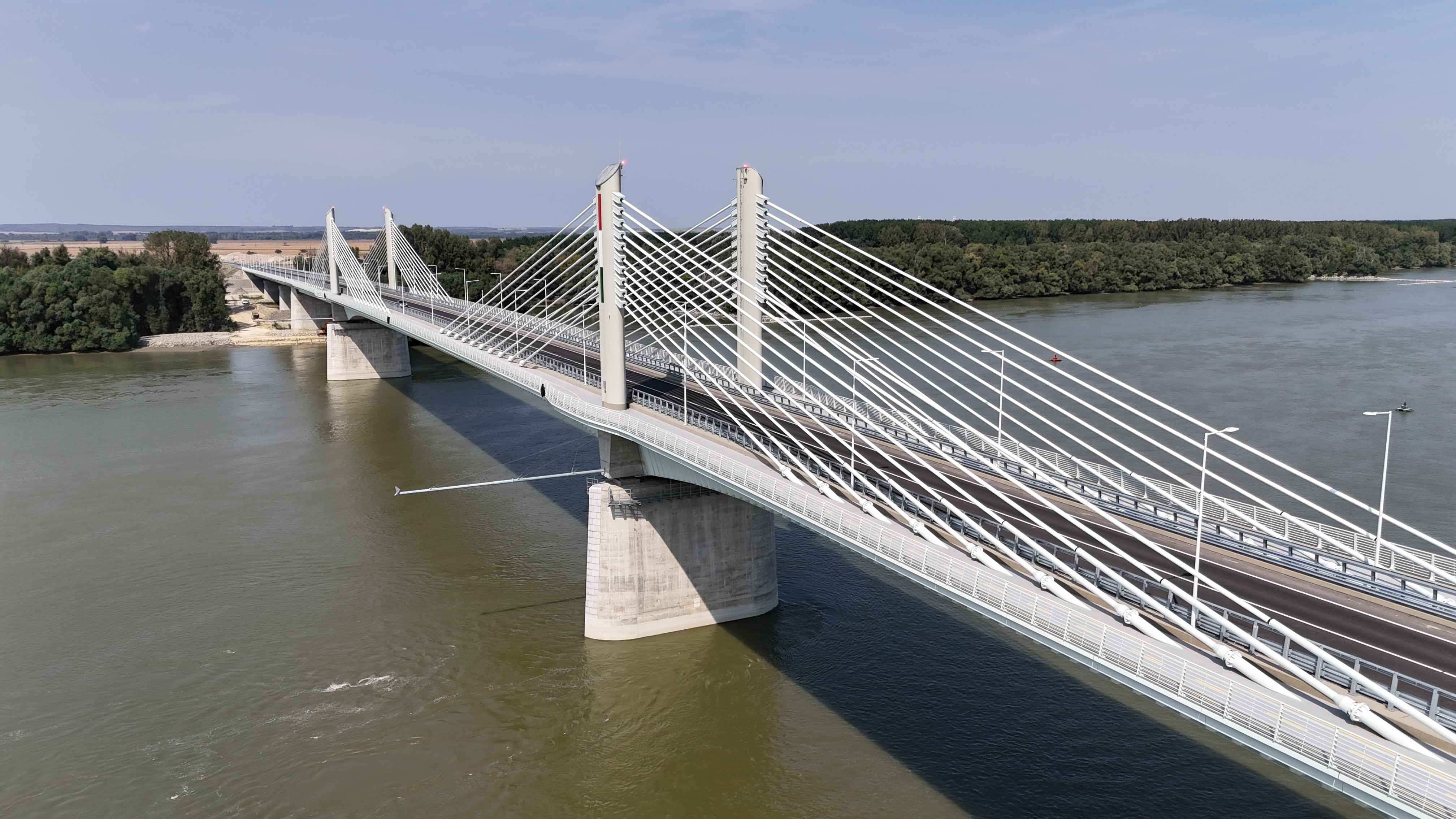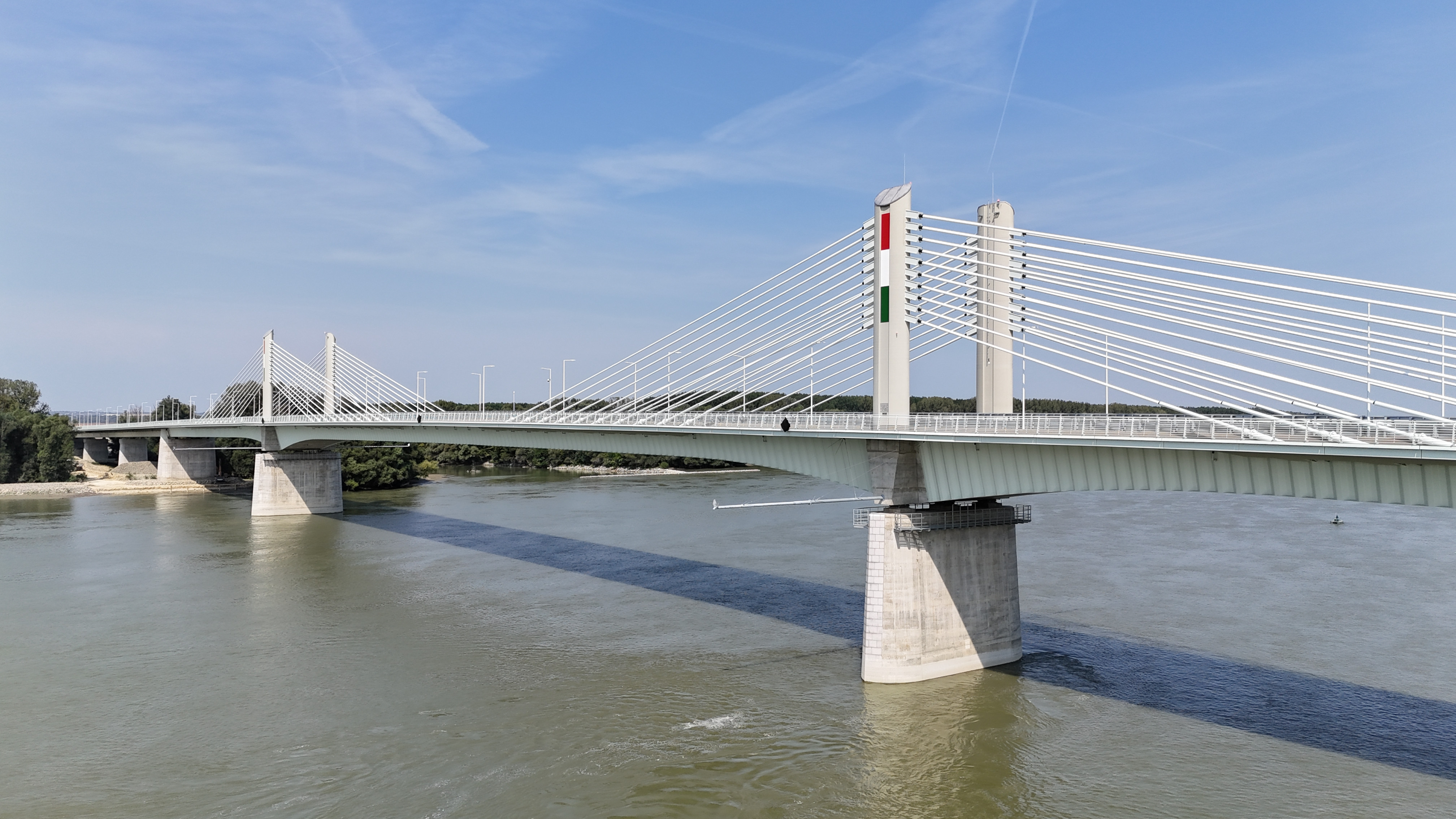 A 440 méter hosszú mederhíd felszerkezete 3 nyílású, a mederpillérek felett parabolikusan kiékelt, extradosed (feszített-függesztett) típusú híd. Főtartója kétcellás szekrénytartó, melynek ferde oldalait és középső falát acél trapézlemez, felső részét mindkét oldalon konzolos kialakítású vasbeton pályalemez alkotja. A felszerkezet az építési és állandó igénybevételeknek megfelelően hosszirányban tapadóbetétes kábelekkel feszített vasbeton pályalemezzel, feszített vasbeton fenéklemezzel, a hasznos teher igénybevételeinek megfelelően pedig a szekrényekben szabadon vezetett csúszókábeles feszítéssel lett kialakítva.