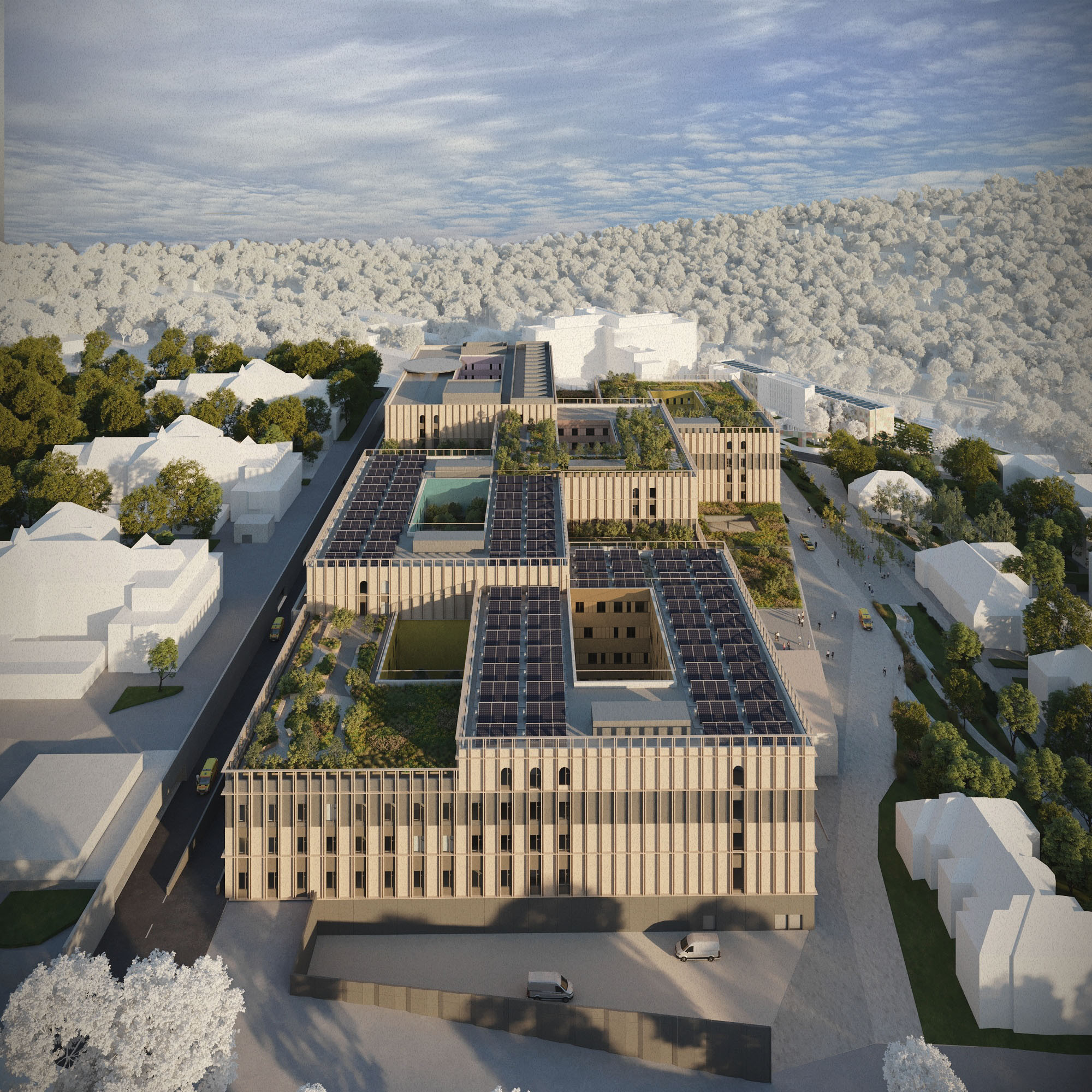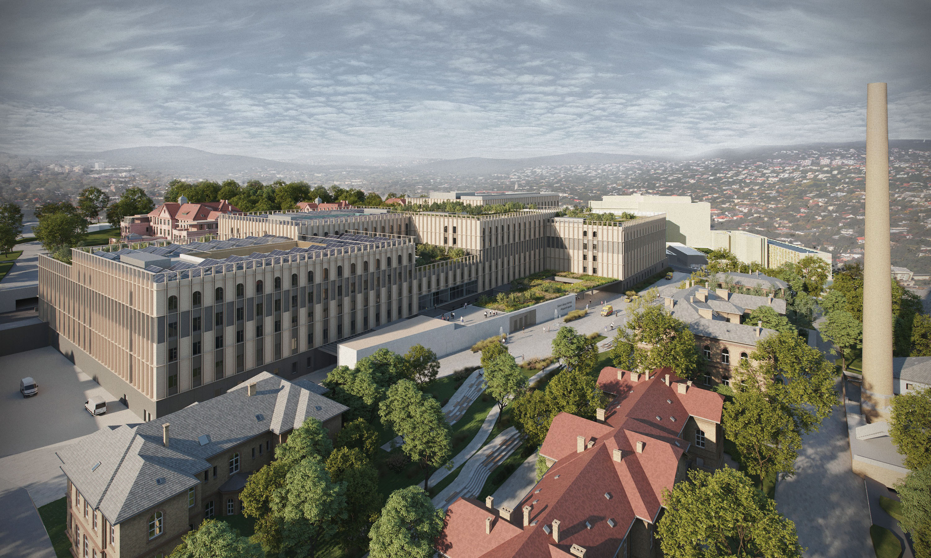 Az Észak-Közép Budai Centrum Kórház tervezésére szóló megrendelést a TSPC-vel közös Konzorciumban nyerte el a CÉH zRt. A tervezési program egy új budai sürgősségi központ kialakítását célozta, mely a budai agglomerációt is hívatott lenne kiszolgálni a Dél-budai Centrum Kórház megvalósulásáig. A programalkotás kezdeti szakaszában a feladat kiterebélyesedett, a nagyjából 45 - 55.000 m2-en kialakítható hatékony és korszerű sürgősségi központ alapterülete újabb funkciót "behúzásával", az egyes funkciók igényelt nagyságának túlméretezésével közel 130.000 m2-es főépület tervezésére növekedett. Ezt az épület - méretet csak a Szent János Kórház hagyományos, átszellőzést és laza beépítést eredményező hármas tagozódását teljesen keresztülvágva lehetett telepíteni. A tervezési programról minden, a környezettel való kapcsolatot biztosító egyéb fejlesztés lehetősége leválasztásra került. A projekt ilyen léptékre növekedéséhez a szükséges források nem állnak rendelkezésre, így a projekt megvalósulása bizonytalan időre eltolódik. Reményeink szerint a CÉH zRt. által a Konzorcium vezető részére eredetileg javasolt, funkcionális méretében szükséges nagyságú - egyébként a Főváros számára rendkívül hiányzó - budai sürgősségi központ tervezése újragondolva megvalósulhat.