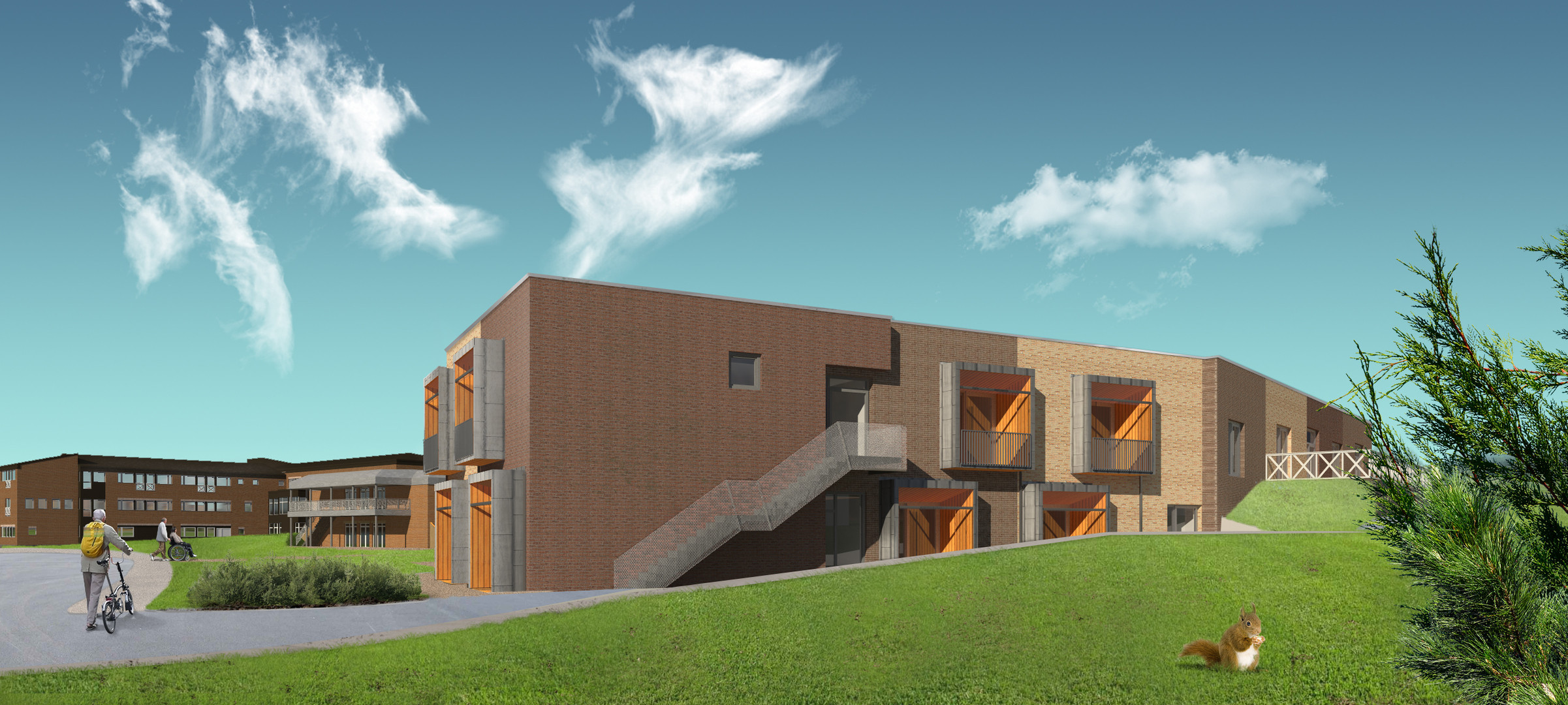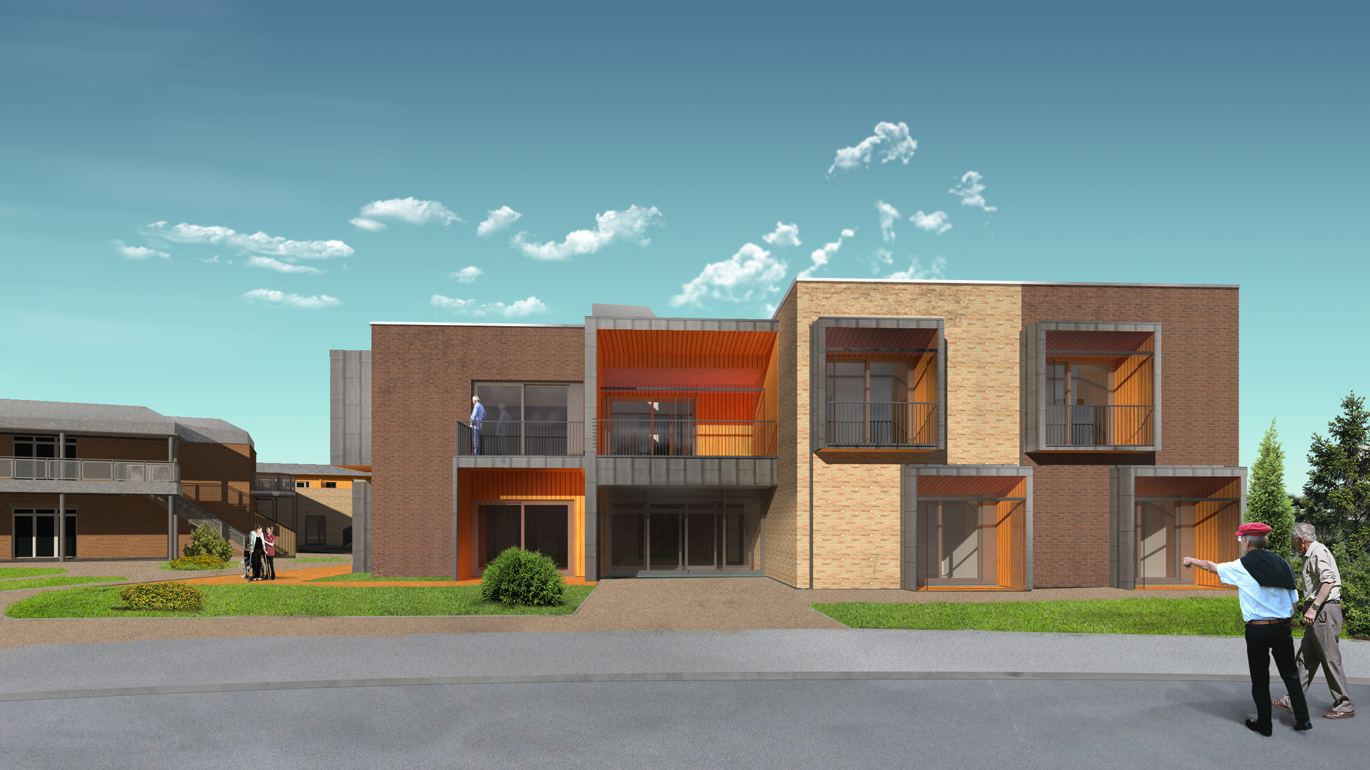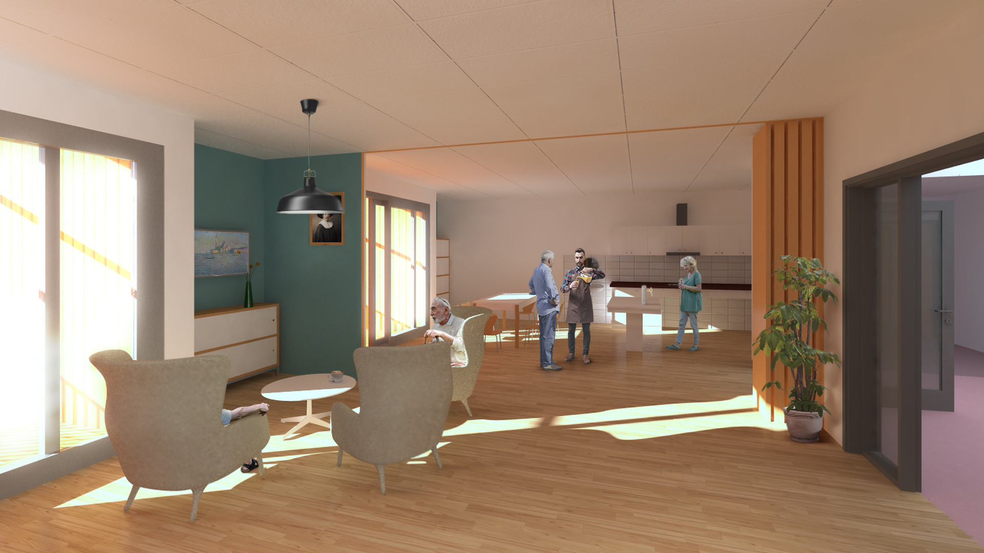 Az otthon építésénél az egyik fő cél, hogy ne legyen a háznak intézmény- vagy kórház-jellege, de könnyen átlátható legyen a demenciabetegek számára.